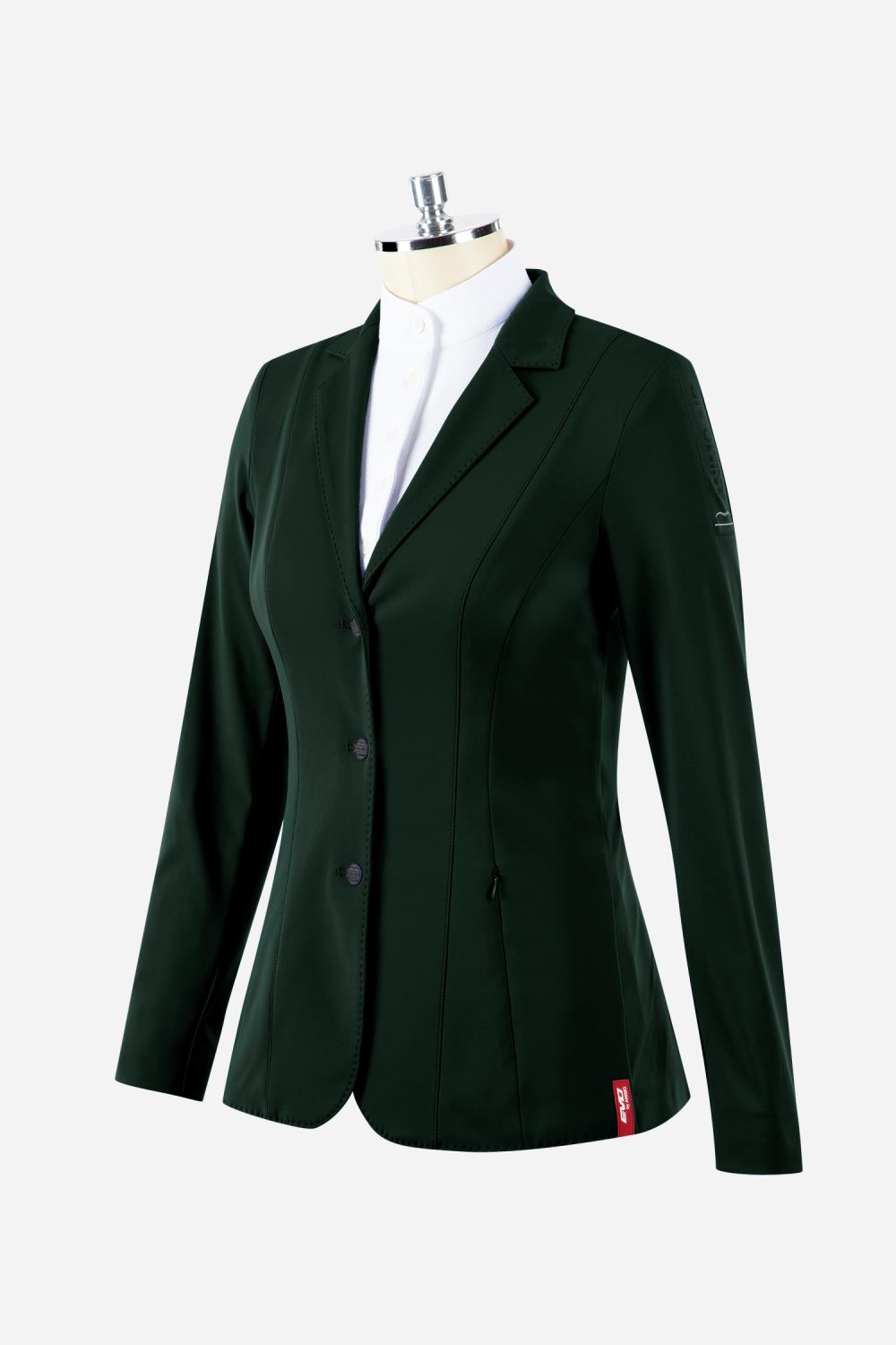 Animo Linvento Stevnejakke for damer blander sofistikert italiensk design med banebrytende ytelsesteknologi. Laget av Animos Sinergy-stoff, sikrer dette lette, fireveis stretchmaterialet optimal komfort og bevegelsesfrihet i salen. Linvento er designet for en elegant, skreddersydd passform, og har en lukking med tre knapper foran med en skjult glidelås for et polert utseende. Lommer foran i sømmene med skjulte glidelåser opprettholder den strømlinjeformede estetikken samtidig som de gir funksjonell oppbevaring. Diskret Swarovski-logo på venstre erme gir et raffinert preg.