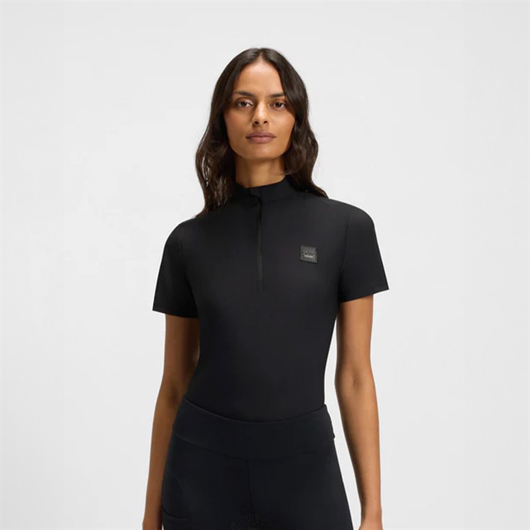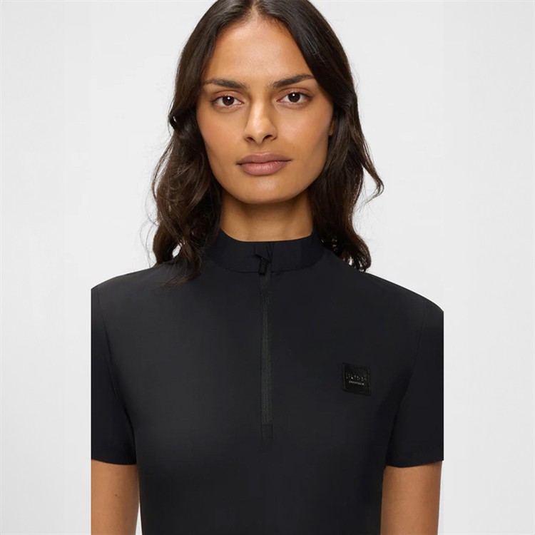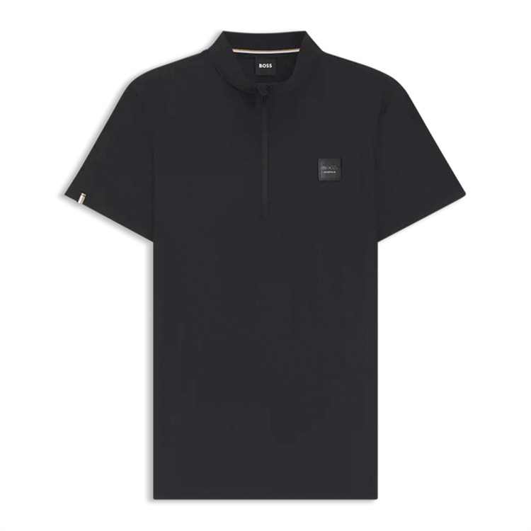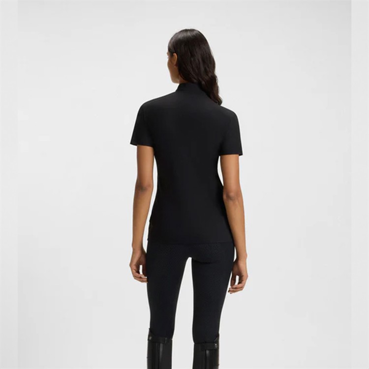 Rideskjorte med halvlange ermer i pustende, elastisk materiale med solfaktor og BOSS-logo på brystet.
