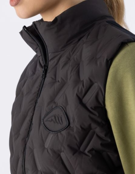 Lett og varm damevest med vattert front, teknisk stoff bak og ultralett dunfôr. Komfort og stil for enhver anledning.
