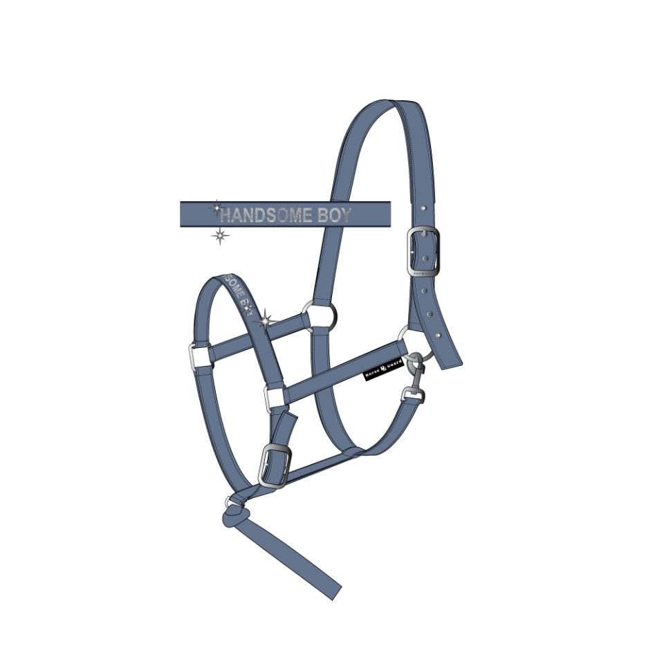 HG Malva føll grime med tekst på nesebånd : Handsome boy