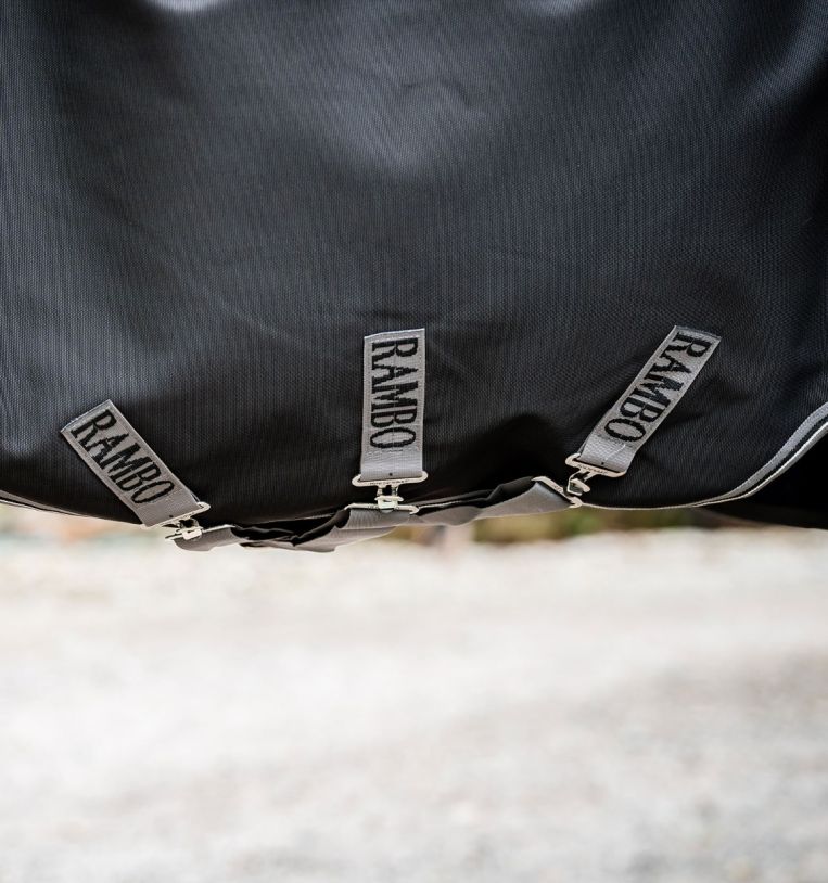 Vår Surefit-halsdesign med V-front-lukking og benbuer gir hesten din økt bevegelsesfrihet til å bevege seg, leke og beite. Reflekterende strimler, tørk av halesnoren og tre kryssede, avtakbare stropper med Rambo® Safety Surcingle System fullfører dette valg.