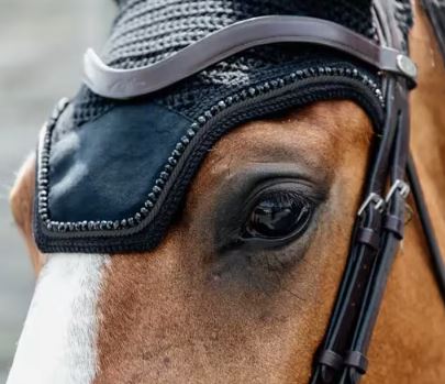 Fly Veil Velvet Pearls er en ekte blikkfang, som kombinerer stil og funksjonalitet. Med elegante fløyels- og perledetaljer beskytter den hestens ører mot insekter, samtidig som den gir et luksuriøst preg. Den er designet for å matche Velvet Pearls salunderlag og bandasje, for et gjennomført uttrykk.