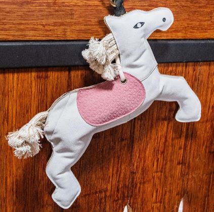 Inni leketøyet sitter en utskiftbar plastflaske som lager en tilfredsstillende knitrelyd som holder hesten engasjert, mens tau-manken og tau-halen inviterer til lett lek og tygging. Takket være borrelåsen i bunnen kan du enkelt fjerne eller bytte flasken når som helst.