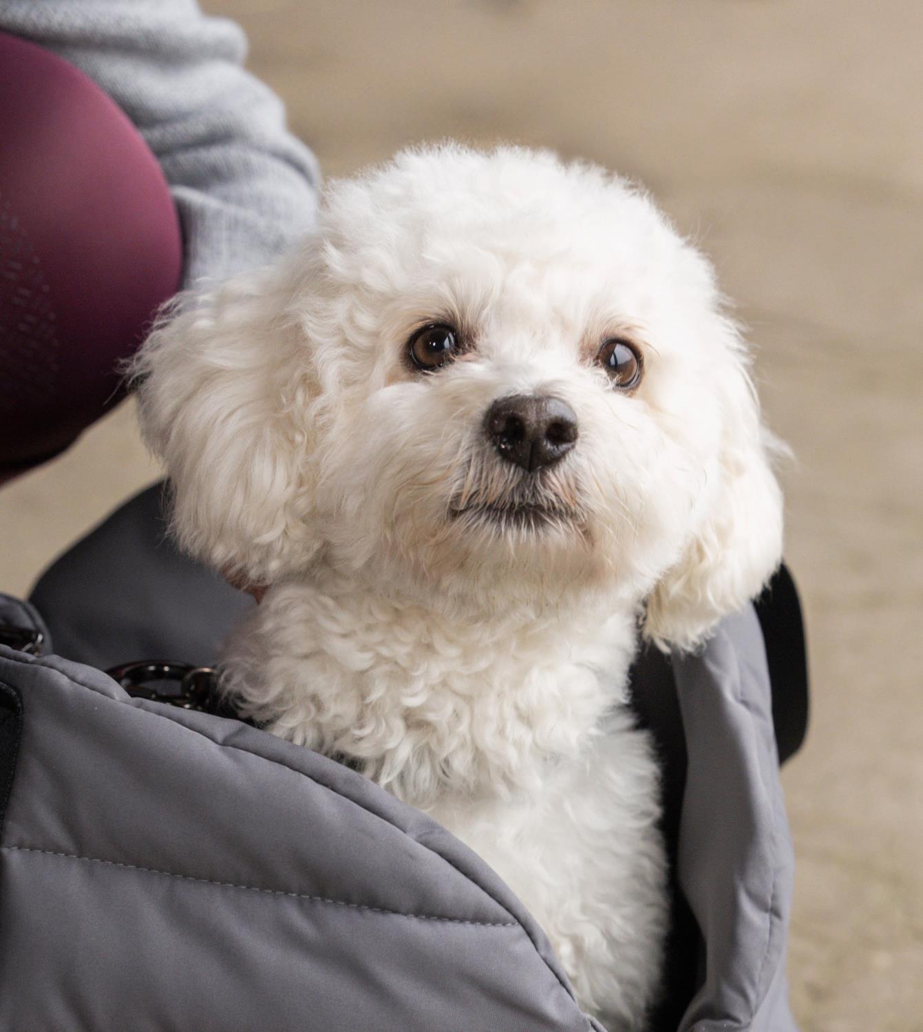 Hundebag og seng i ett, kan åpnes vis glidelås på siden slik at baggen også kan funksjonere som hundeseng.