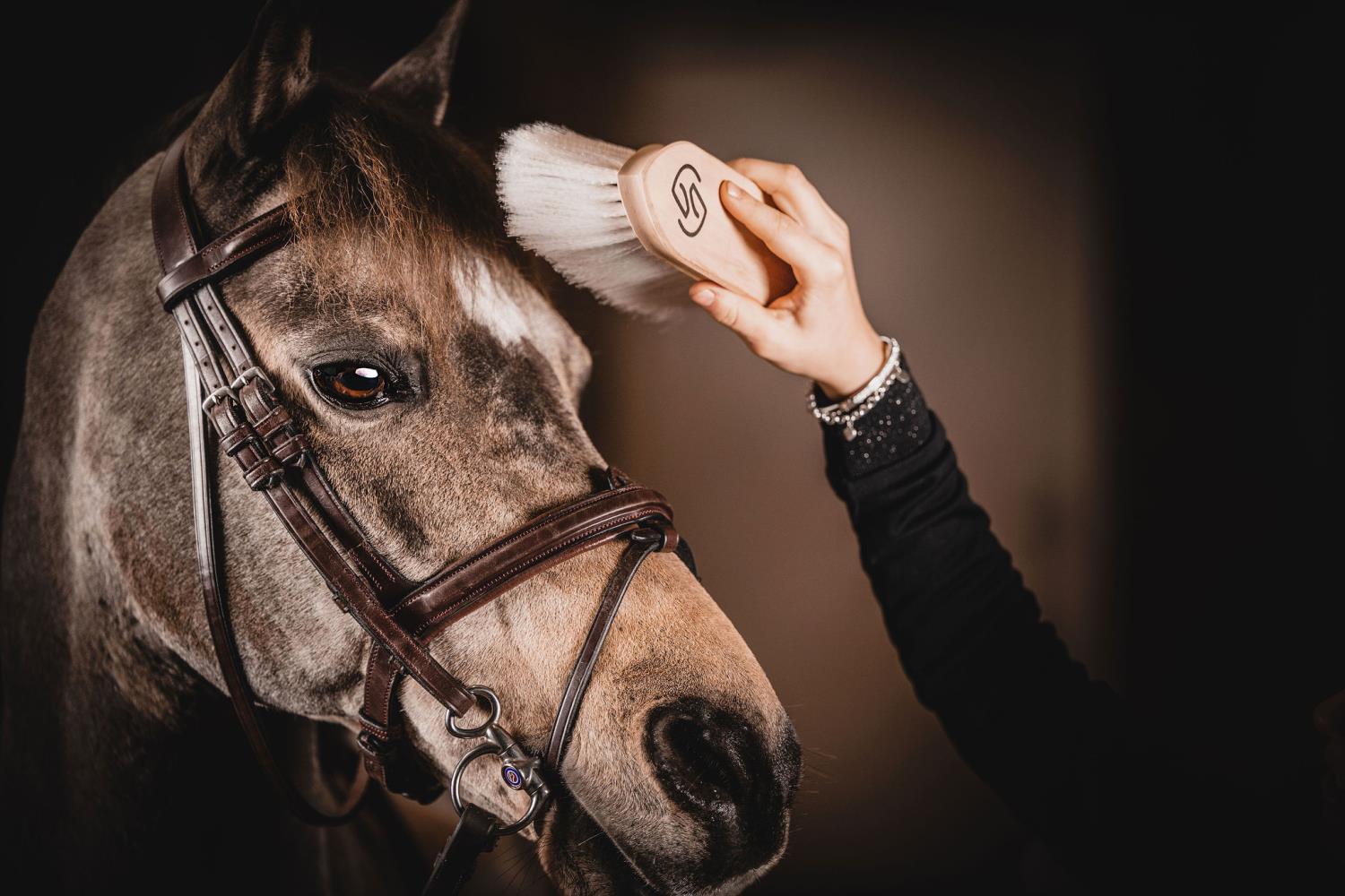 Kan også brukes til å børste hodet på hesten. Unik lettvektsbørste, ideell hvis mange hester må børstes eller til konkurranser.