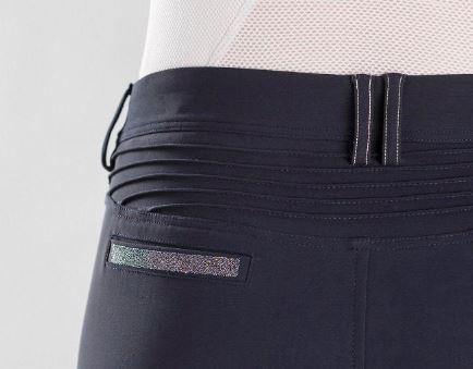 Den ikoniske Adele knee grip-ridebuksen representerer den perfekte balansen mellom eleganse og ytelse for den moderne rytteren. Den middels høye midjen fremhever silhuetten samtidig som den gir optimal bevegelsesfrihet. Laget av pustende, elastisk og slitesterkt italiensk stoff, holder buksen seg pen over tid takket være en anti-nuppe- og krøllfri finish.