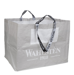 Denne slitesterke Wahlsten-logobagen er egnet som høypose eller til oppbevaring. Bagen har doble bærehåndtak av 3 cm bredt polyesterbånd. Det er hvite områder på begge sider av posen for navngivning. Størrelse 60 x 40 x 45 cm.